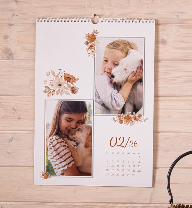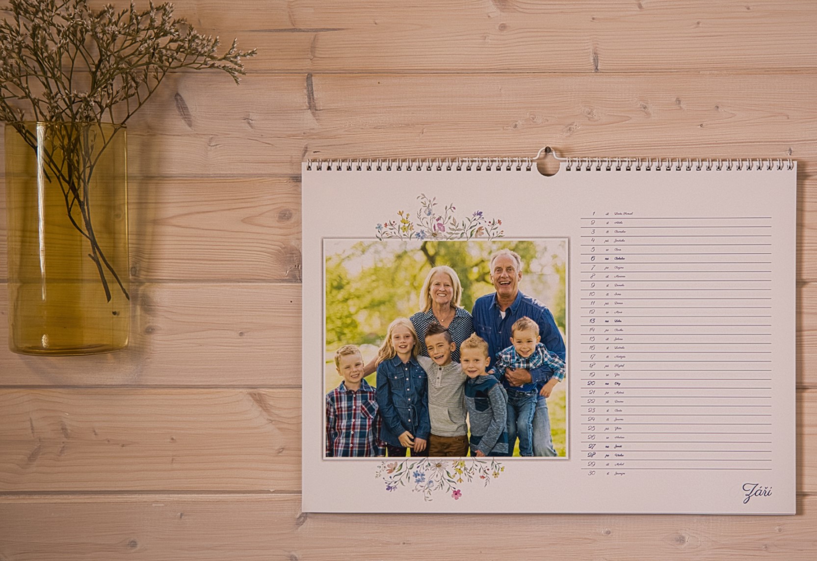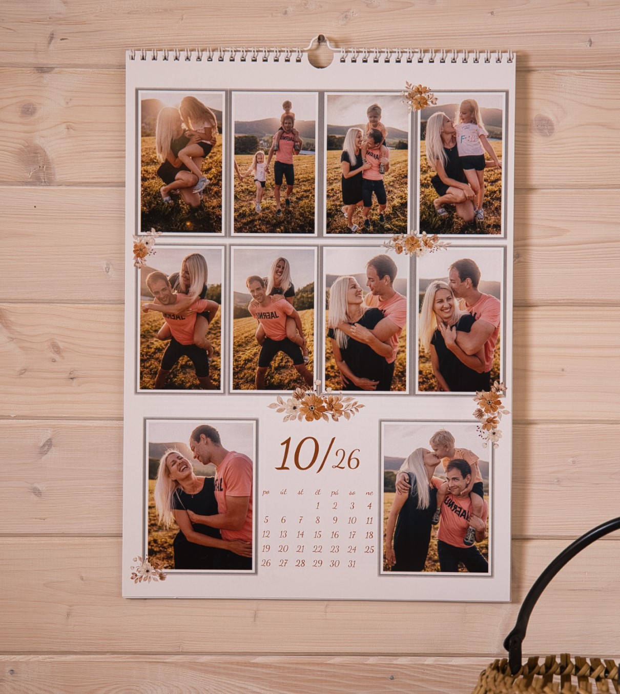 Kalendár si jednoducho navrhnete online – bez inštalácie programov. Stačí nahrať fotografie a za pár minút máte pripravený osobný nástenný fotokalendár A4 alebo rodinný fotokalendár presne podľa seba.