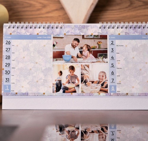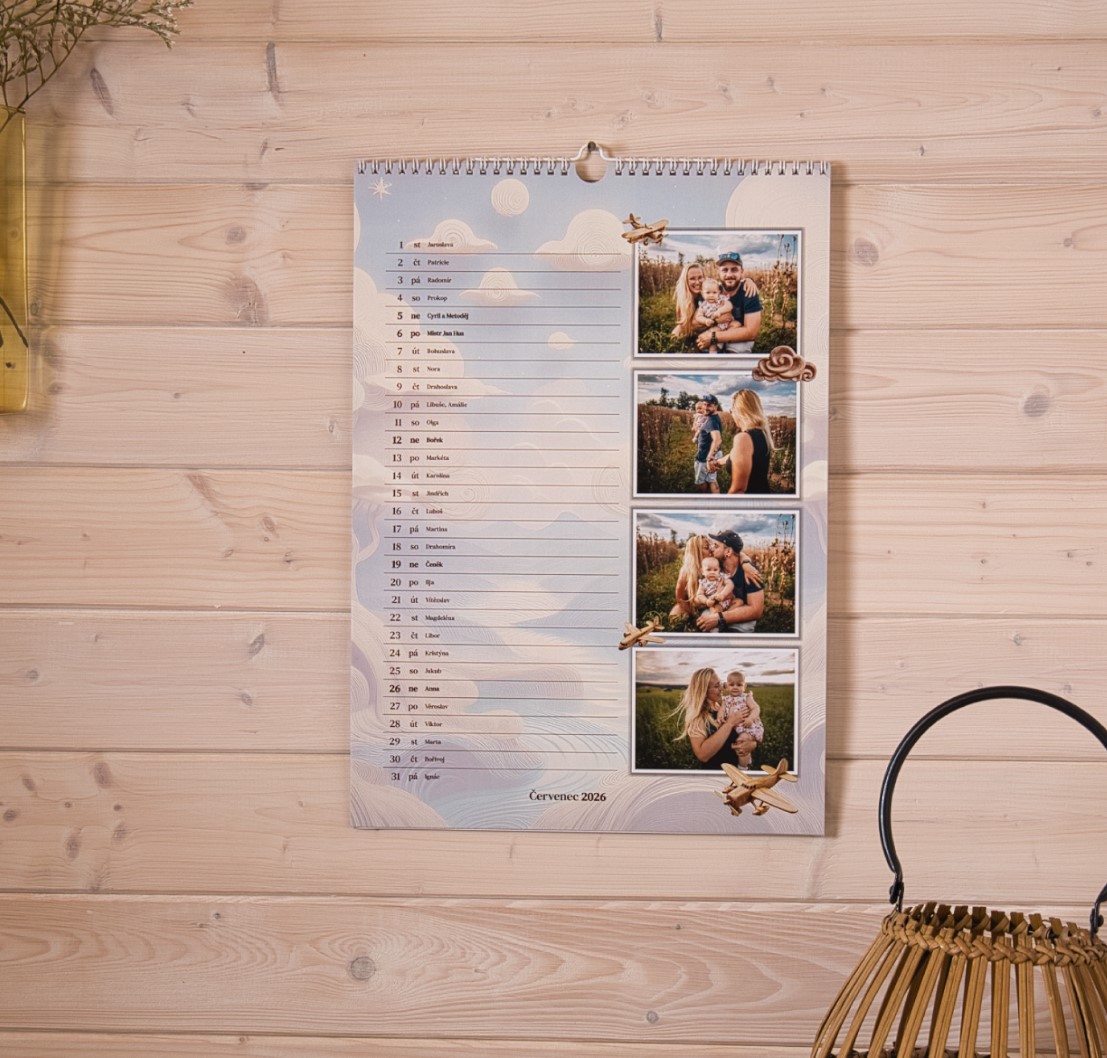 Navrhnite si vlastný plánovací fotokalendár A4 z vašich fotografií a majte celý rok pod kontrolou. V rodinnej tlačiarni Reptisk v Jeseníku vyrábame kalendáre už od roku 1991 a každý kus prechádza ručnou kontrolou. Vďaka tomu sa môžete spoľahnúť na poctivú českú kvalitu a precízne spracovanie.